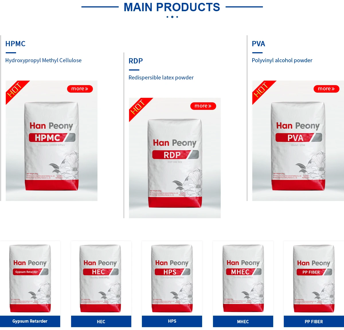 Combined with the market situation and the implementation of the internationalization strategy, the product range covers: HPMC, RDP-VAE, HEC, MHEC, HPS, Defoamer, SHP, PVA, Gypsum Retarder Agents and other series of products and widely used in gypsum-based masonry mortar and plastering mortar, cement-based mortar, self-leveling materials, tile adhesives, putty powder, coatings,daily chemical products, etc. And enjoy a high reputation in more than a dozen countries and regions such as China, Southeast Asia, Europe, America, and South America.